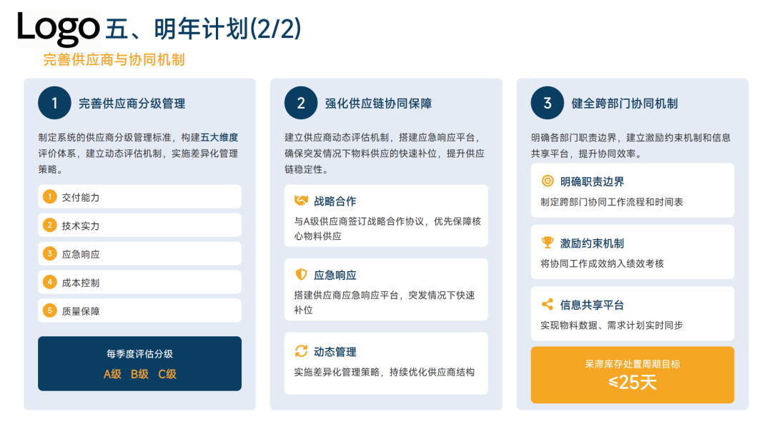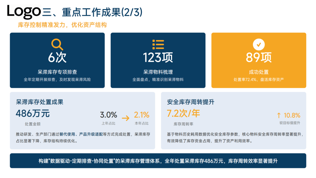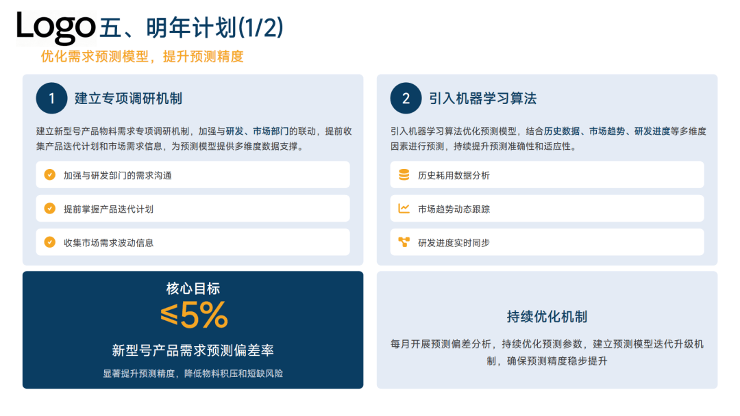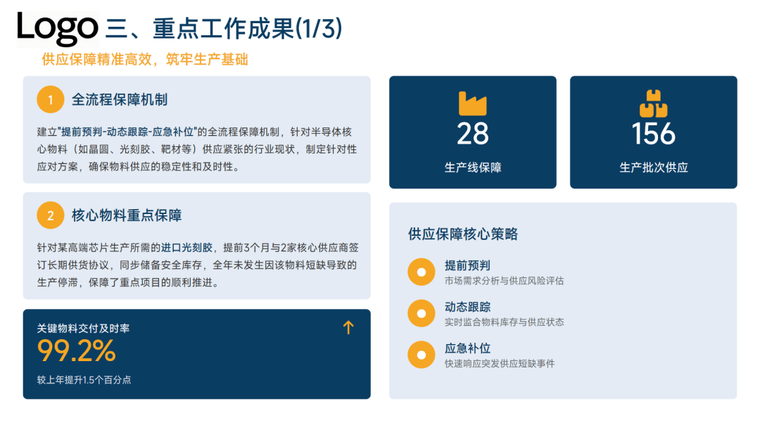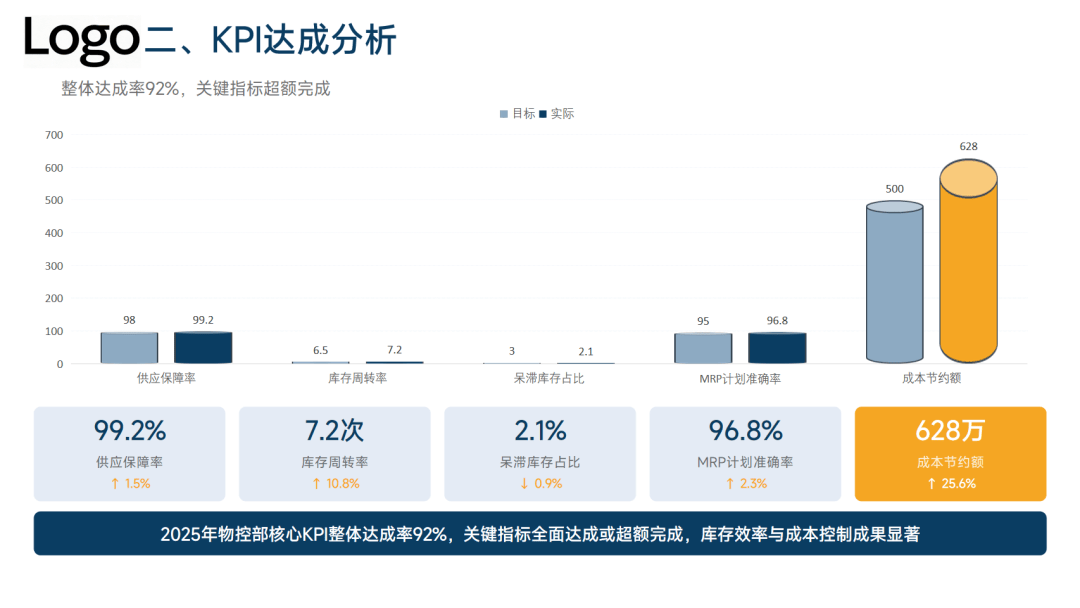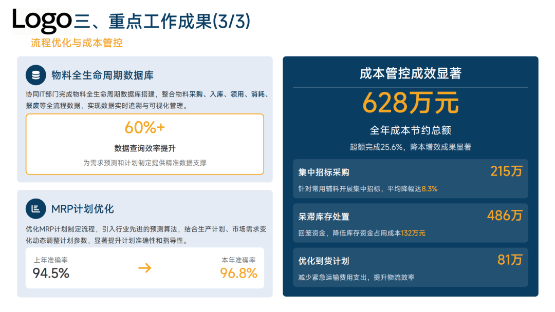 物控员写年终工作总结常遇思路混乱、重点不清晰、数据难梳理等问题!这个物控员年终工作总结ppt模板可直接编辑,包含物料周转率、库存准确率等关键数据的梳理,另外还对问题分析、改进方案、明年工作思路都进行撰写,对物控员快速搭建总结框架、填充优质内容都有帮助。适配全行业物控岗位,新手老手都能用,3小时快速完成规范总结,省时省力省心!