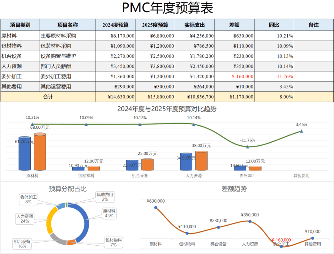 【必存】PMC年度预算表模板,防乱花、查差额,高效管钱不头疼