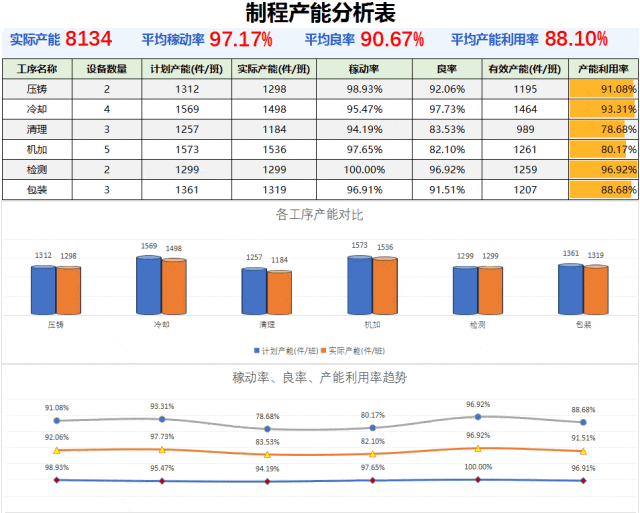 【收藏】制程产能分析表,自动计算+图表可视化超省心