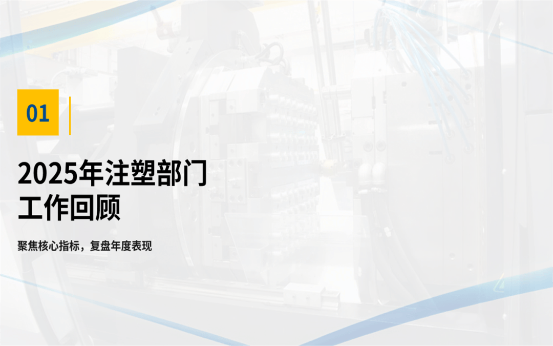 又到一年的盘点总结报告,在刚过去的2025年,我们注塑部门将通过下面的ppt年终总结报告来演示,注塑部门在2025年交出了一份怎样的答卷?又遇到了哪些挑战,对明年的工作开展又明确了哪些方向?
