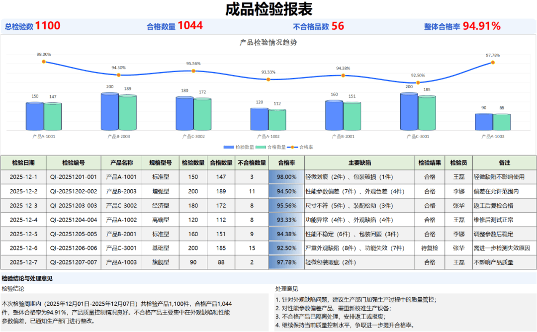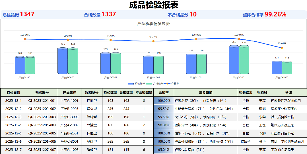 生产质检必备!成品检验报表模板,3分钟出专业报告!