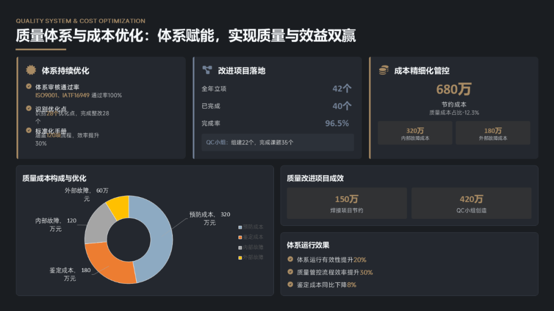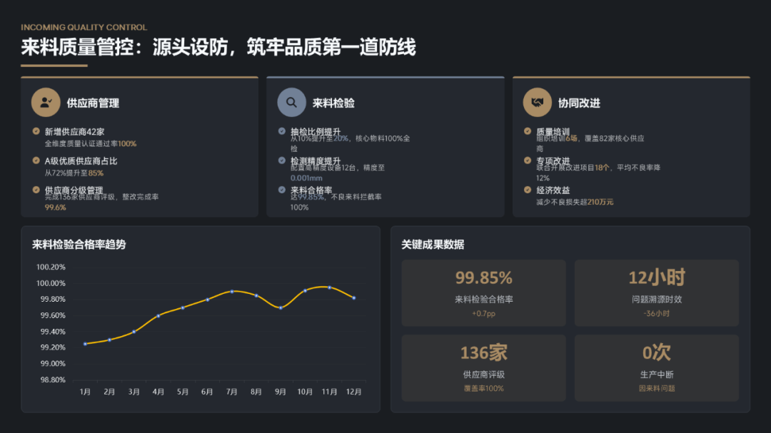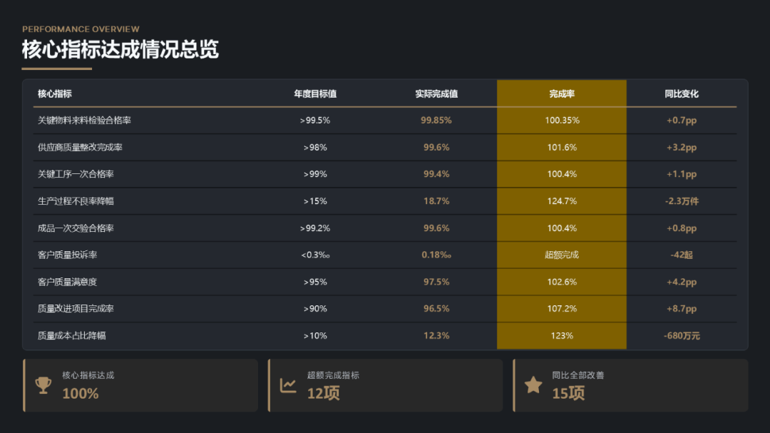 【PPT】品质质量部门年终总结及规划:零批量事故,客户投诉减半,成本直降680万!