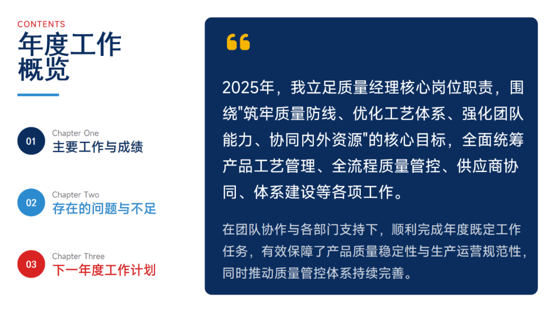 【PPT】质量经理年终述职救星!2025总结完整版,从成绩亮点到问题改进,逻辑清晰超省心