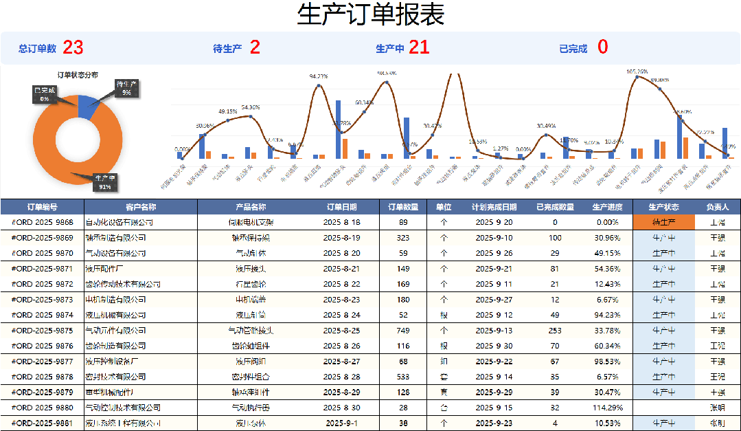 客户催单慌到乱?这个生产订单报表模板救急!自动汇总+图表可视化,1秒查状态