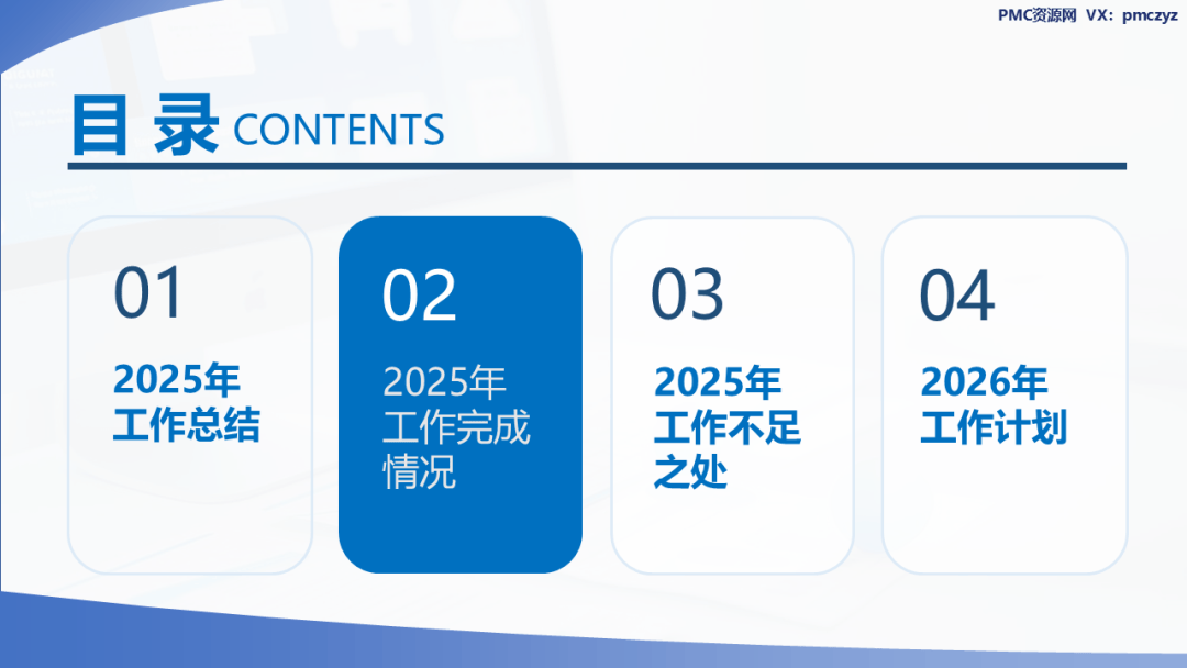 一年一度的年终总结又要开始了,每到这个时候,许多朋友都会很茫然,不知道如何从哪里入手,今天就为大家分享一篇2025PMC年度工作总结及2026年工作计划的PPT模板,大家可以直接编辑修改使用。
